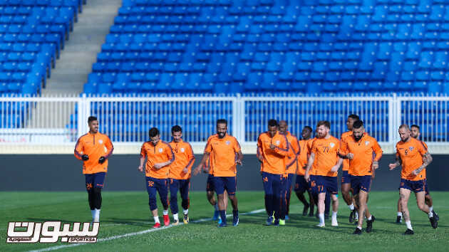 واكتفى المدير الفني للفريق السيد خورخي سيماو بتمارين خفيفة اشتملت على تمارين لياقية وقائية، بالإضافة إلى تمارين ترفيهية قبل أن يختتم السيد سيماو المران بمجموعة من الجمل التكتيكية والتسديد على المرمى من الكرات الثابته وركلات الزاوية والتنظيم الدفاعي والهجومي أثناء ذلك.