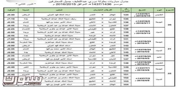 كشفت لجنة المسابقات بالاتحاد السعودي لكرة القدم عن جدول الدور الثاني من مباريات دوري عبد اللطيف جميل.