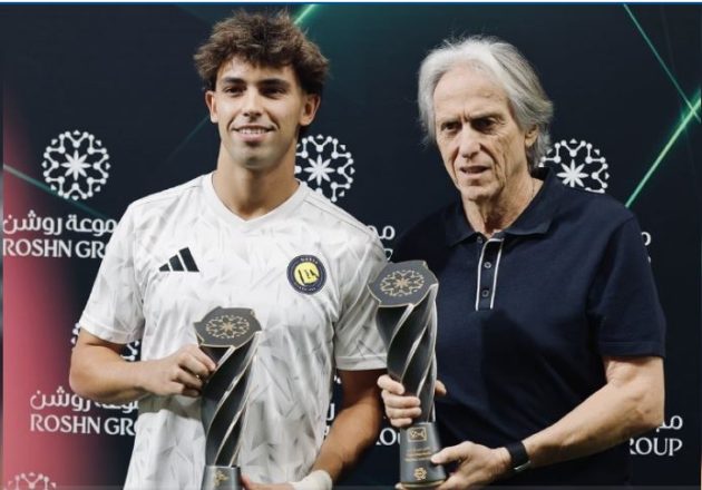 ونال جيسوس الجائزة قبل لقاء فريقه النصر أمام الفتح كما نال البرتغالي جواو فيليكس على جائزة أفضل لاعب.